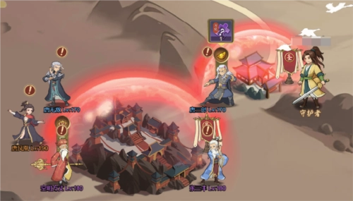 阵营宣战后,阵营成员能策略性编排多支队伍,进攻敌对阵营的城池,或防守本阵营遭宣战的城池。可提前集结,设置阵型及自动战斗,丰富多样的半自动系统设置,助力掌门轻松游戏,成就一统天元霸业。 【帮战对决】 每日20:00 - 21:00是盟战时间,不同城池、不同的进攻或防守位置,有着不同的地形限制与增益效果(BUFF),这就需要各位掌门根据实际情况灵活应对。不妨尝试运用田忌赛马的策略,牵制敌方核心战力,达成全面攻坚的目标~