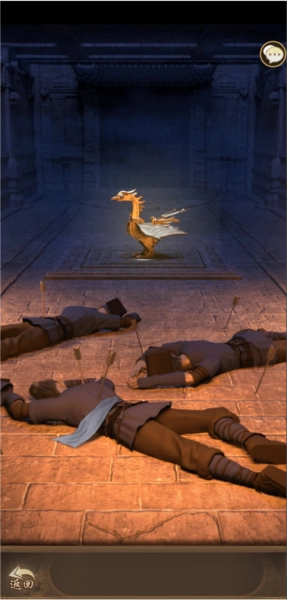 1、触碰尸体完毕后,点击地面,届时会有机关射出箭矢。通过滑动屏幕操作,将箭矢斩断。