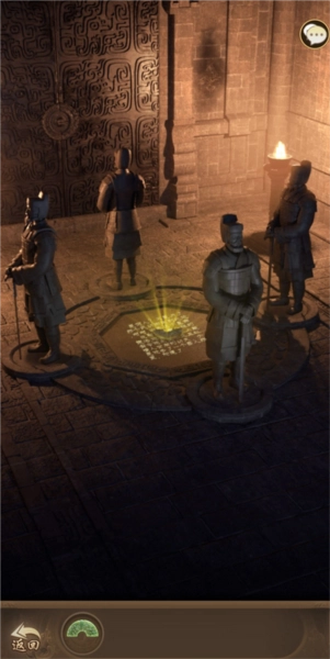 2、依照图中兵马俑的站位摆放,点击后方墙体,上面会有箭头指示站位。