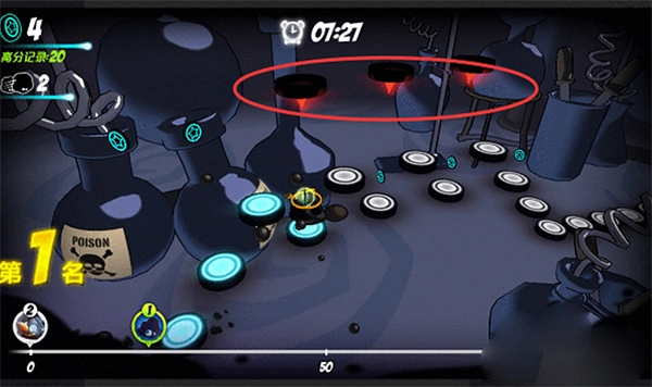1、游戏进行到后期,会出现移动的圆盘,玩家看到后别慌张。
