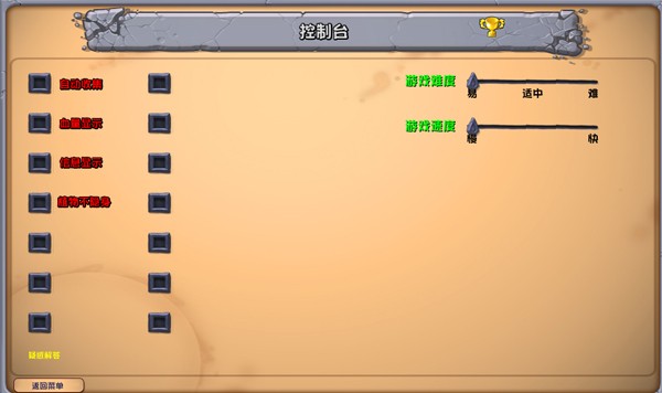 2、取完之后,点击控制台,玩家能够进行自动收集、血量显示等设置,还能对游戏难度和速度进行调整。
