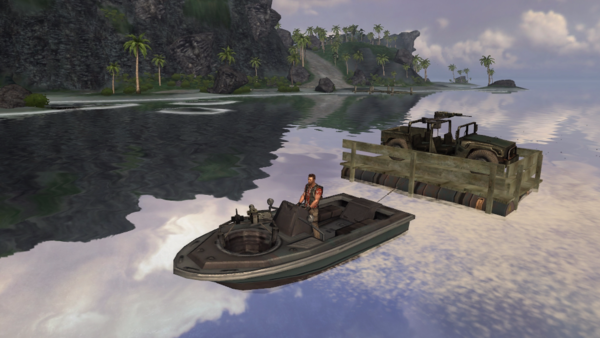 我叫Jack Carver,生于这片美丽的珊瑚岛群,是个靠驾驶游艇讨生活的人。在某年某月某日的一个夜晚,我邂逅了一位名叫Valerie的漂亮又性感的女记者。Valerie让我开游艇送她到珊瑚岛附近的一座荒岛上,那地方我从未涉足,但看在丰厚报酬以及有美女相伴的份上,我答应了……夜色静谧,我站在桅杆处,荒岛已然近在眼前,虽说悄无声息,却隐隐透着股危险的气息。Valerie驾驶着摩托艇朝着荒岛驶去。就在这时,一枚导弹击中了我的小船,我不顾一切地往前跑,子弹如雨点般从身后袭来,紧接着,一颗手雷在身后即将爆炸,慌乱之中,我一头扎进水中的涵洞,随后剧烈的爆炸让我直接晕了过去……