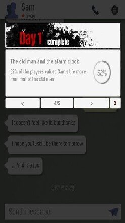 末日逃亡死亡之城(Dead City)是一款由Headup Games推出的文字冒险游戏,游戏以聊天软件的聊天方式展开,玩家通过和主人公的对话,了解他目前所处的环境以及困境,帮助这个陌生人山姆在末日世界的死亡之城中生存,而你选择将影响着他的命运,是成为的他的救命稻草,还是?都由你来决定,游戏提供了有多种类型的结局,欢迎试玩!