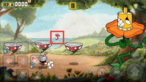 2、当boss准备发射橡果时,角色先往左侧移动,接着跳到最左边的杯子上,最后冲刺返回。