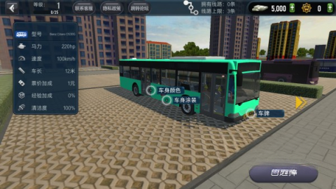 初入游戏的玩家能够在游戏主界面,查看到公交车的各项详细参数,其中涵盖车型、马力、速度、车长、票价加成数值、经验加成数值,以及车内清洁度等信息。
