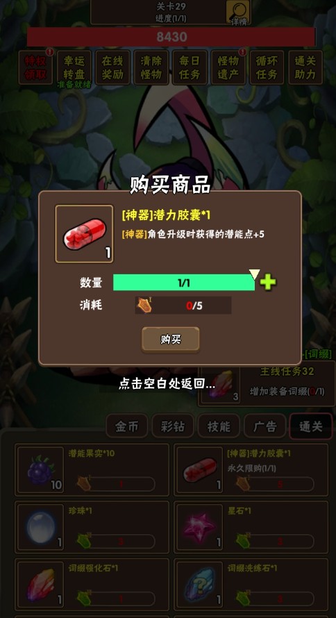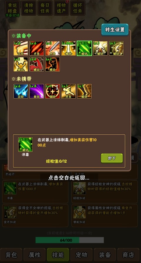 1. 在挂机状态下,你能够随意对各种设置进行挑战,这有助于你摒弃一些无用的装备。