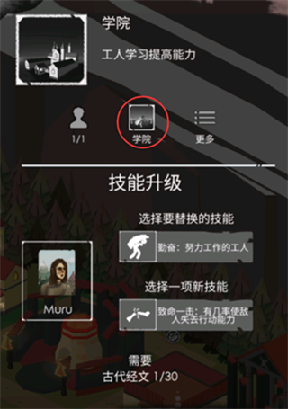 选好工人后,即可点击中间的学院按钮,进入技能学习界面。