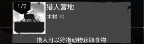 建造猎人营地需要耗费10木材。猎人营地内最多能够安排两位猎人入驻。猎人负责狩猎,从而获取食物,这是游戏早期食物的关键来源。猎人营地具备储存食物和皮毛的功能,其中食物可为工人补充能量,而皮毛既能制作成皮革,还能用于部分建筑的升级。猎人营地专门用于储存食物与皮毛这两类资源,当物品储存达到上限时,玩家便能够对猎人营地进行升级,其最高能升至3级。