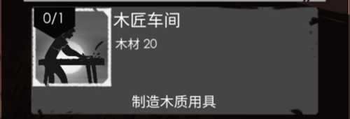 建造木匠车间需要耗费20木材。玩家能够在木匠车间里指定一名工人担任木匠,在此处打造木质工具。于木匠车间中,能够制造锤子、手推车、木矛等工具,这些工具既能加快工人们的工作效率,还能用于制作简易武器。木匠车间内的物品皆需使用木材来制造,并且后续可进行升级,每升一级便能够制作新的物品,最高能升级到3级。