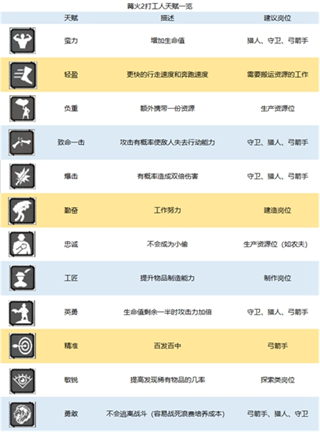 在此处,你能够挑选攻击力较为强劲的天赋。然而需要留意的是,拥有勇敢天赋的工人在参与战斗时,极易牺牲,这会造成成本的浪费,所以最好别让他们去担任守卫;而具备轻盈天赋的工人,又容易跑得太快,导致队友无法跟上,进而直接“送人头”。