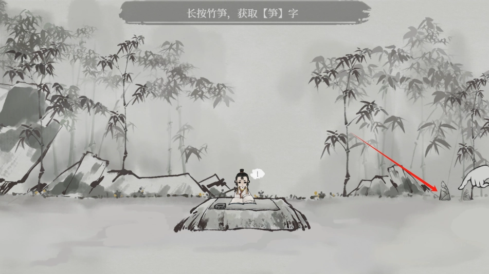 接下来点击右侧的竹笋,获取“笋”字,按照提示把“笋”字从中间拆分。
