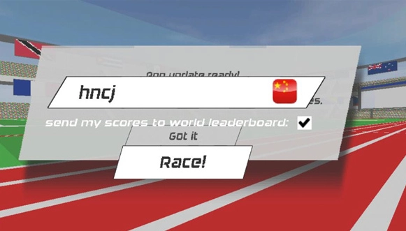 打开速度之星后,我们能够挑选自己国家的国旗,还可以输入自己心仪的昵称。