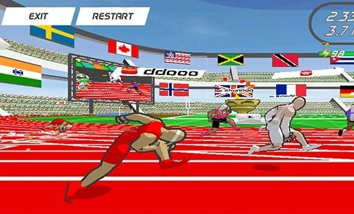 点击屏幕的速度越快,运动员奔跑的速度也就越快,