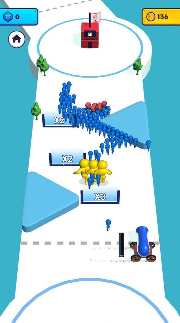 2、游戏画面鲜艳明亮:游戏画面明亮华丽,玩家可操控大炮摧毁所有障碍物,同时沉浸在轻松的游戏氛围中,获得良好的游戏体验。