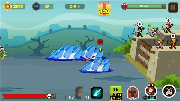 游戏采用2D画面呈现,玩家需要控制己方要塞发起攻击,同时抵御敌人的进攻。在这个世界里,所有玩家的操作都较为简单,能够顺利制定并执行自己的塔防策略。游戏节奏十分紧凑,玩家可招募弓箭手并提升其各项属性,借助强大的攻击力,以及多样的技能和武器辅助功能来推进游戏。
