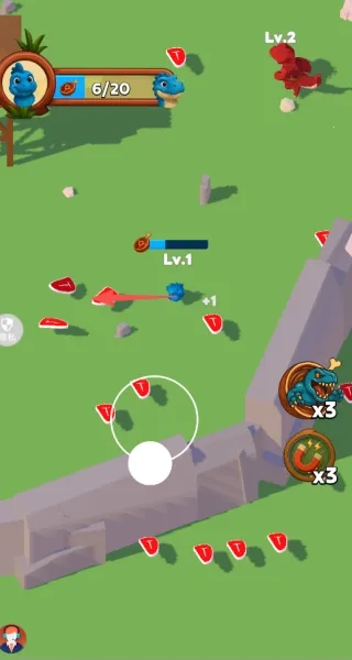 4、在游戏初期,优先操控蓝色恐龙去收集红色肉块,能够帮助玩家快速提升经验值。
