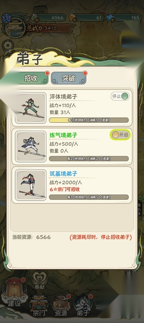 3、随着等级的提升,能招收的弟子也会越来越多