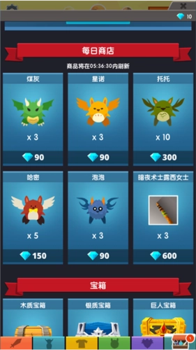 商店里能用钻石买东西,商品会定时刷新。钻石可以通过看广告或者完成成就获得,虽然给的不算大方,但勉强也够用了。