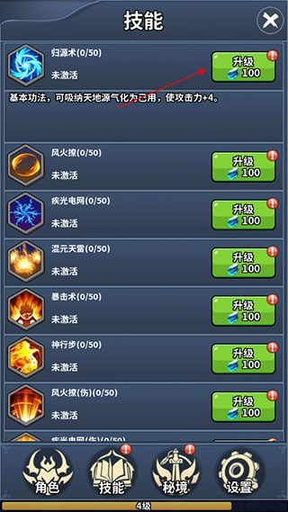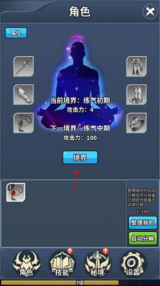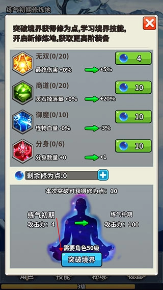 接下来点击突破境界按钮就可以了,不过突破境界需要角色先达到对应的规定等级才行。