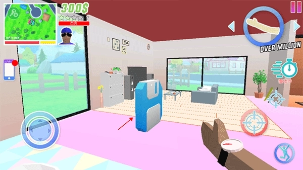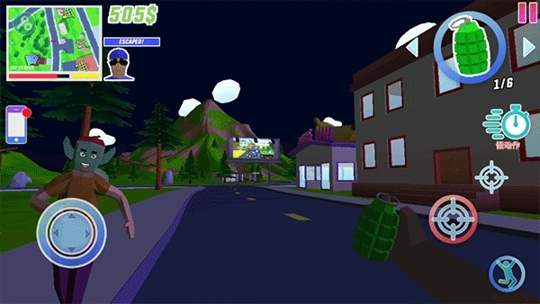 4、使用屏幕左侧的虚拟摇杆控制角色移动,右侧的手型图标可切换当前手持物品,如武器、工具或炸弹,灵活应对各种突发状况。