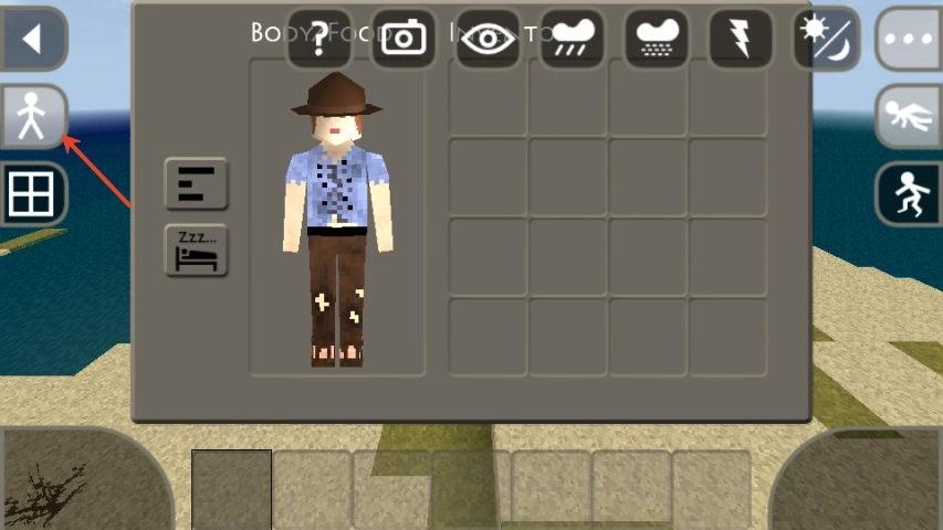 7、右上角还有控制天气的按键,如雨天、阴天、晴天等,眼睛图标可以调整游戏视角;