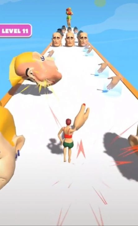 2、在赛道上你得集中注意力,当人头靠近时要快速挥出巴掌,别让它碰到你。