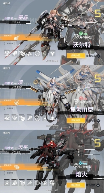 里海三型—凌:由于游戏机制,即便存在充值活动会赠送凌的另一款机甲(白天鹅),但同步者无法同时使用两台机甲,所以不做此选择。