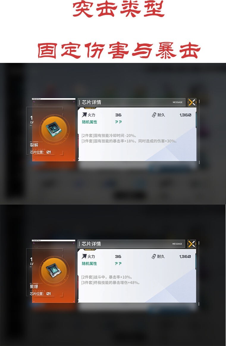 前期由于资源有限,练度尚低,此时只需留意芯片套装效果,无需在意随机属性。到了后期,若想组建暴击流、减益流等特定队伍,再去关注属性词条也不迟。