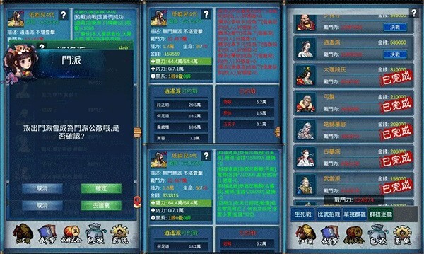 1. 游戏开局,将战力提升至3万,达到逍遥派的入门门槛。接着购买袁承志的装备,包括金蛇剑和金丝甲。之后径直前往并邀请五老加入队伍,只要有一位五老同意入队,就去攻打华山派和丐帮,获取启动资金。