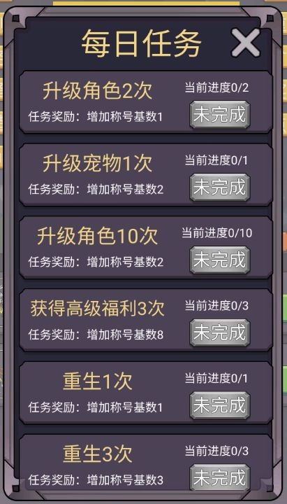 注:每次重生,可增加离线收益,关卡数越高,给的重生值越高。
