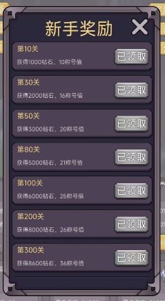 这个奖励和新人奖励一样只能领一次,但它的奖励更丰厚,钻石数量也更多,主要是用来激励大家推进关卡的。