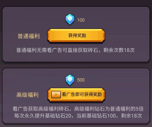看广告能够提升普通福利的获取数量,因此建议先领取高级福利,再领取普通福利。