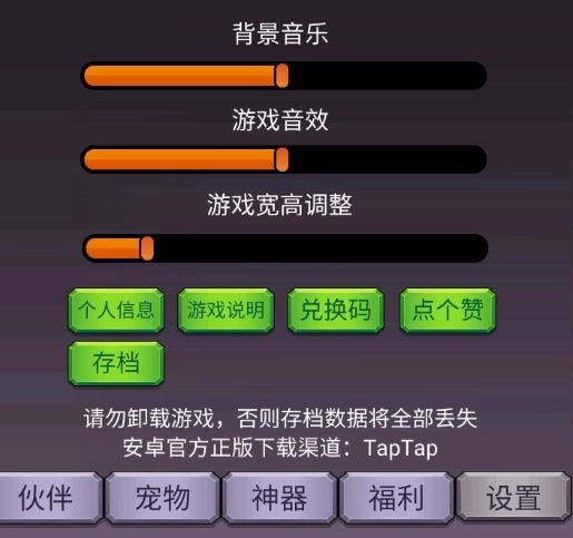 在设置界面中,你可以对游戏音乐进行调节,更改游戏窗口的大小,查看自己的个人信息,使用兑换码领取礼包,以及进行云存档相关操作等。