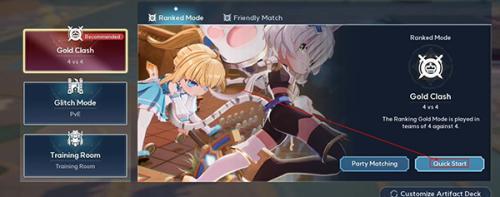 2、开始游戏时,玩家可选择“GoldClash”进入4v4竞技模式,点击右下角的QuickStart就能开启游戏了。