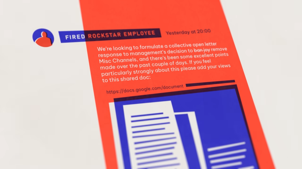 根据最新报告,整起事件的导火索或许是员工在内部通讯软件Slack被清理后,转而通过Discord频道讨论工作环境、工人权利以及工会相关的议题。在此之前,R星开展了一次所谓的“Slack清理”行动,删除了不少与工作没有直接关联的讨论频道。而员工在Discord上的交流行为,最终被公司判定为解雇理由里的“严重不当行为”。