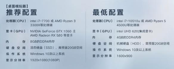 1、最低配置要求如下:处理器需为i7-10510u或Ryzen 5 4500U;显卡方面,集成显卡Intel UHD620即可满足基础运行需求;内存至少4G;HDD需预留20G存储空间;操作系统仅限Windows10;显示分辨率需达到1600×900。