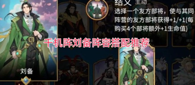 《千机阵》作为一款主打策略战棋玩法的角色扮演手游,玩家需借助合理布阵、精心培养武将以及灵活运用战术,来战胜敌方势力,一步步实现战场称霸的目标。不少玩家在获取刘备这张武将卡后,都十分关心该如何搭配阵容。下面是小编为大家整理的详细攻略,感兴趣的玩家不妨一起来了解一下!
