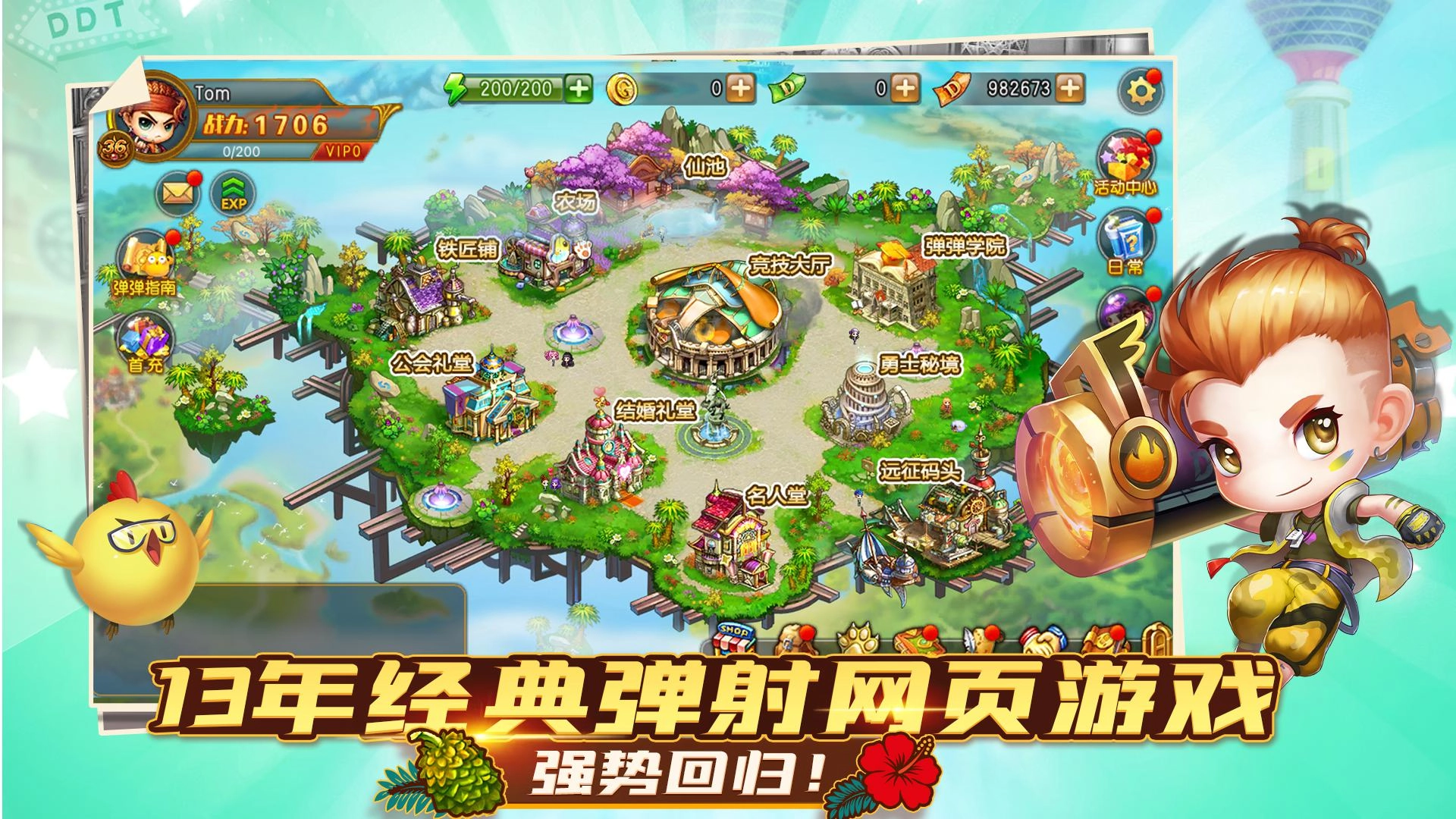 《弹弹堂》是一款主打弹道物理轨迹判断与团队协作的游戏,整体节奏轻快,营造出兼具益智性、强社交属性与个性化特色的友好休闲竞技氛围。在最新版本里,游戏新增了本地化翻译功能,玩家能够切换成本土角色。此外,游戏还提供了丰富的武器选择与玩法模式,支持玩家打造传统风格的武器;同时配备多种宠物与道具,可供玩家进行多样化的策略组合,以此威慑对手。