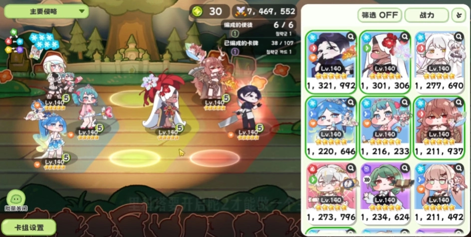 这段文本以持续压场和多段能量供给为主要特点,推荐的配置如下:尼尔、克萝伊、内蒂、戴安娜、莉妞瓦、茜斯特、爱丽丝、阿妮特、破朗、混沌琳。