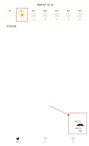1. 打开应用后,轻点日期选择框,挑选需记录的日期,例如【周二 - 1】