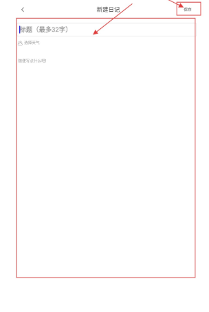 4、于日记编辑页面,填写日记标题与内容,点击【保存】按钮,即可完成日记记录。