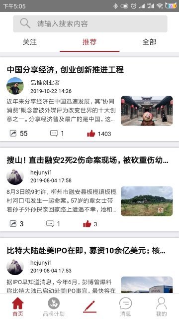 《品推资讯》是品牌计划公司精心打造的一款实用新闻资讯软件。它拥有海量热门的原创头条,还有实时直播视频,为大家带来便捷服务以及即时性的新闻体验。要是你热爱看新闻,或是想深入了解当地发生的大事,感兴趣的朋友不妨赶紧下载体验一番!