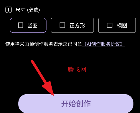 3. 尺寸选定后,点击“开始创作”,就能开启新画作的创作之旅啦!