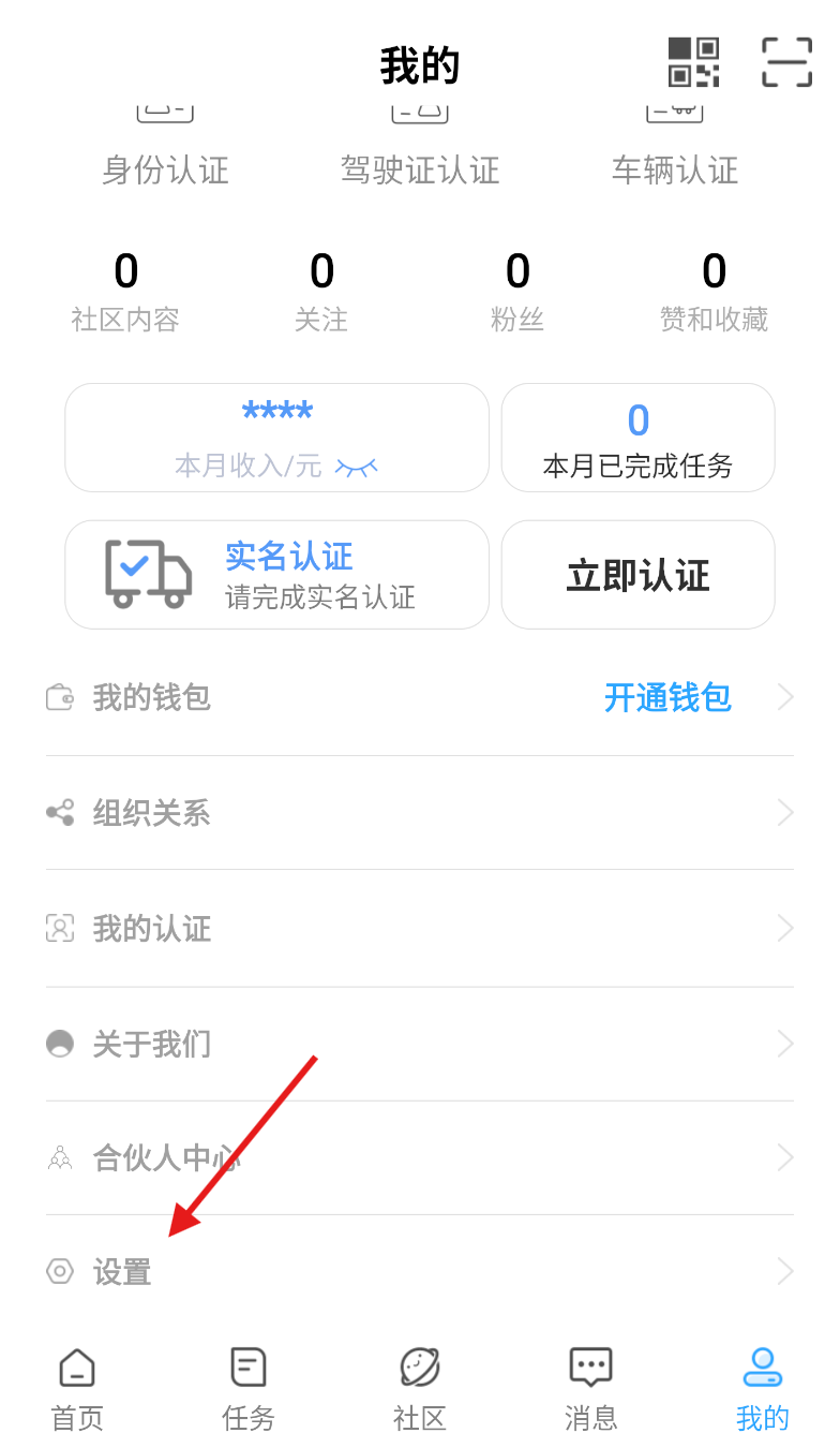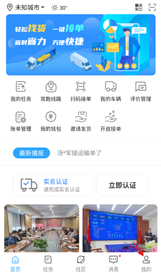 1. 开启物流公社司机应用,于主界面寻觅并点击“我的”选项,从而进入个人相关页面。