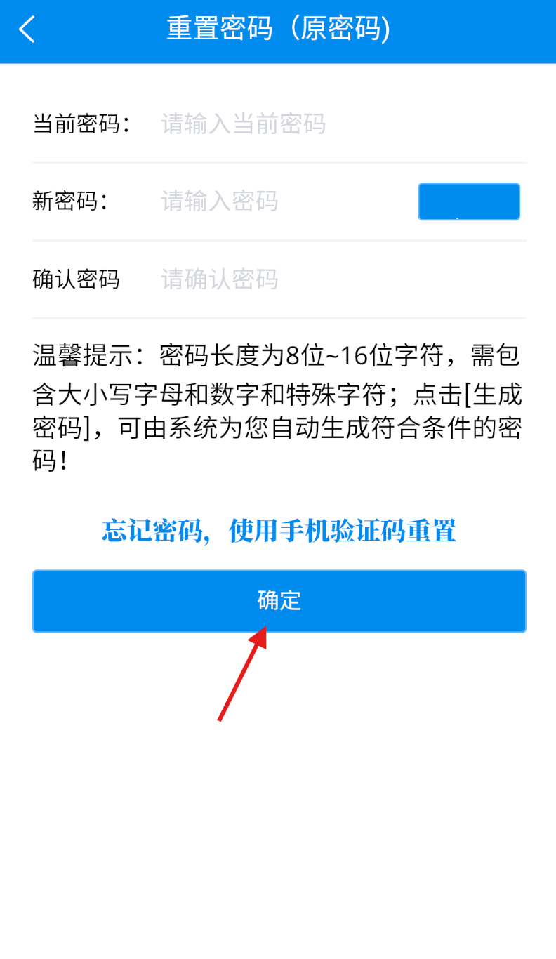 4、首先输入当前正在使用的登录密码,接着连续两次输入新密码,最后点击“确定”,从而完成密码重置。