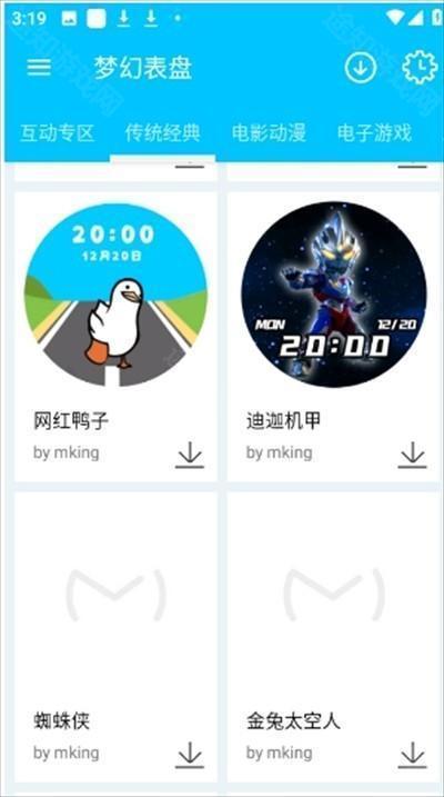 4、在手机上打开梦幻表盘应用,浏览挑选你心仪的表盘面板,点击按钮,等待表盘资源加载完毕。