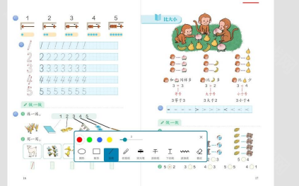 ⑥画笔批注:轻点即可弹出画笔工具,随后就能在教材页面上进行涂写。