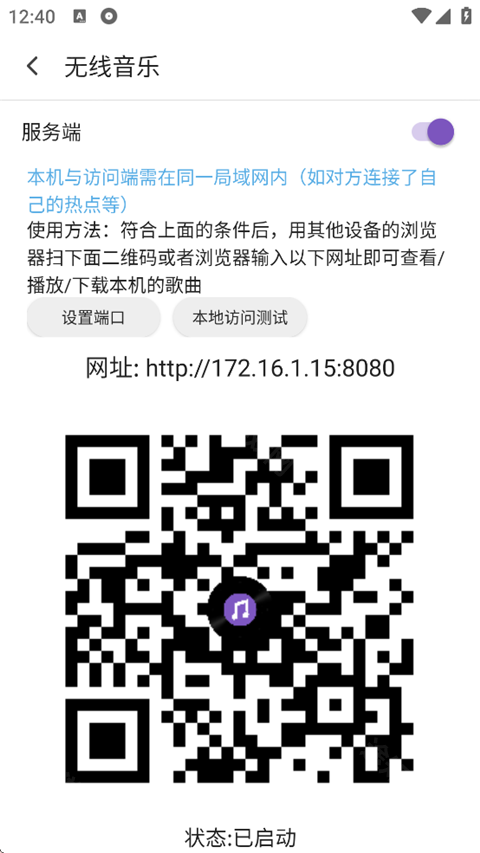注意:本机和访问端必须处于同一局域网环境中。(例如,对方连接了本机创建的热点,或者与本机连接同一个wifi等情况)
