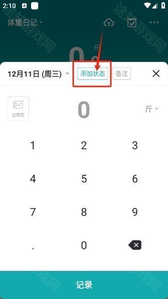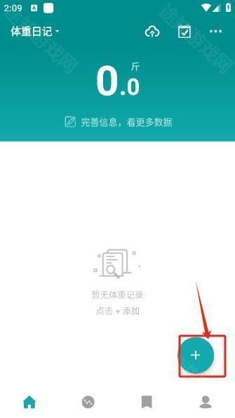 1. 找到本页面的体重日记,点击打开后,再点击下方的“+”号。