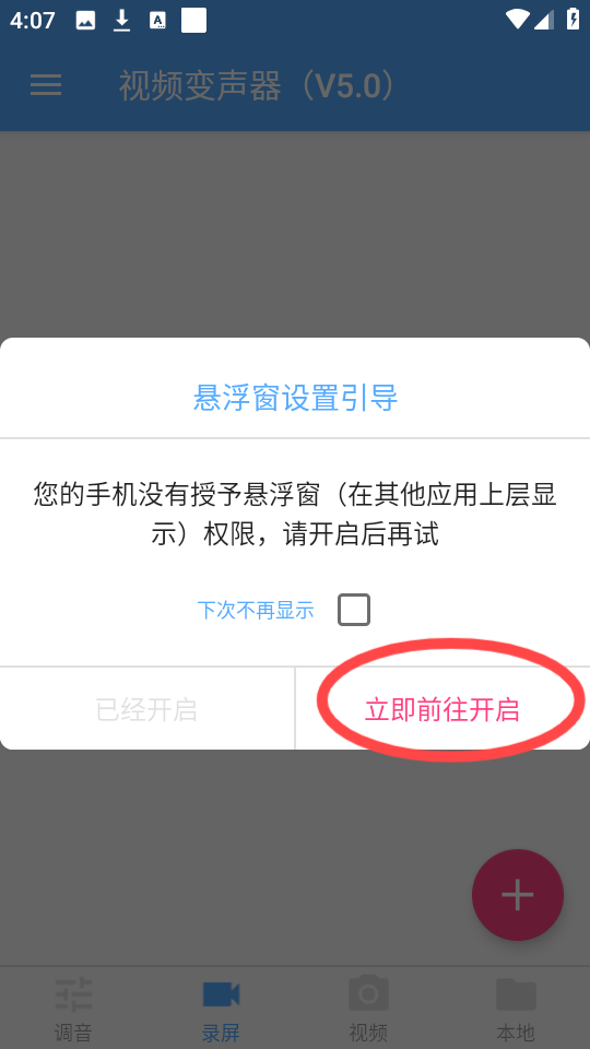 3、若为初次操作,系统会提示开启悬浮窗权限,点击“立即前往”以完成设置。